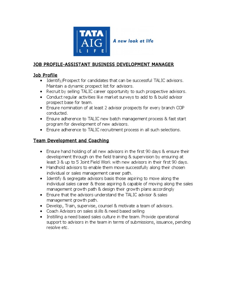 Job Profile Assistant Business Development Manager