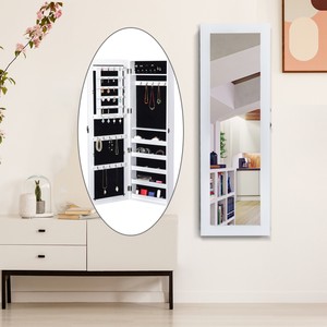 Premium White Cheval Mirror Over The Door Wall Mount Hanging Jewelry Cabinet Armoire Box Stand Organizer Case For Mirror Rings Necklaces Bracelets