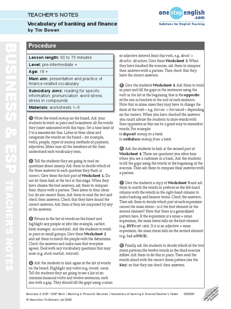 Vocabulary Of Banking And Finance Level A2 Pdf Cheque